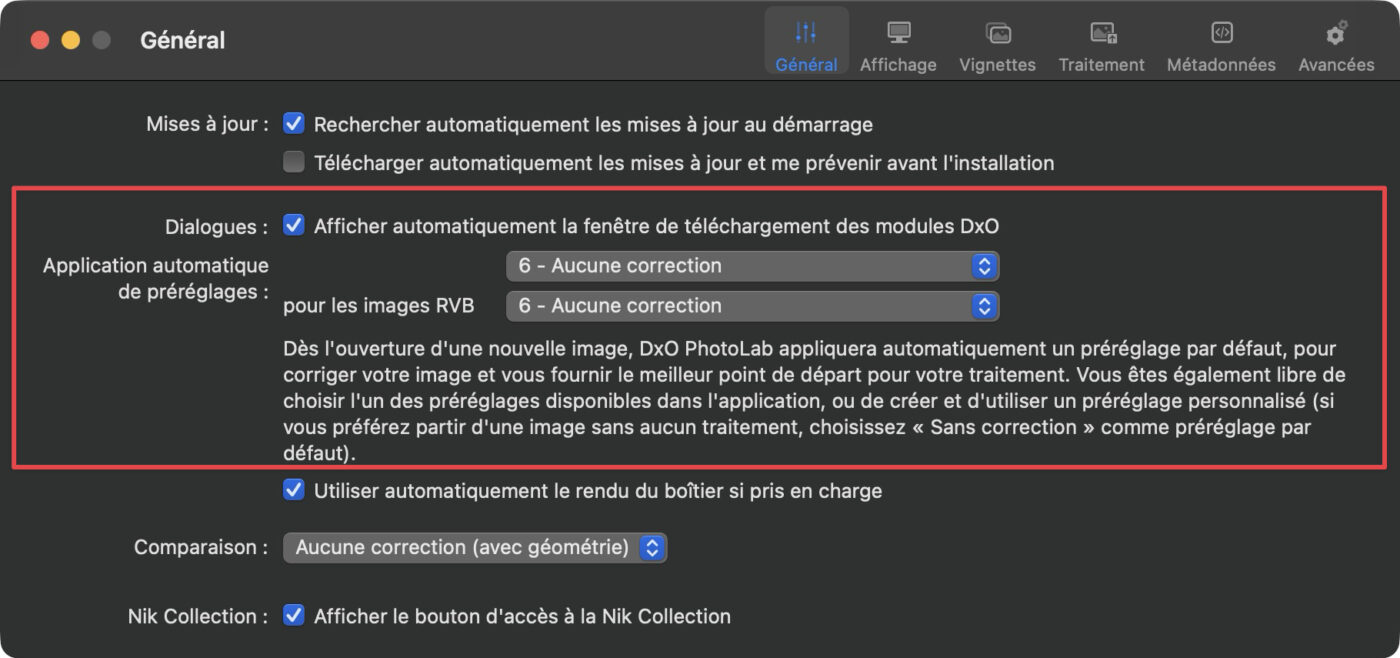 Après un détour dans les réglages du logiciel, il est possible de désactiver entièrement les corrections automatiques à l’ouverture d’une photo. L’ennui, c’est que PhotoLab semble ignorer totalement ces paramètres… et accentue couleurs et contrastes malgré tout. Un point qui pourrait rapidement irriter les professionnels.
