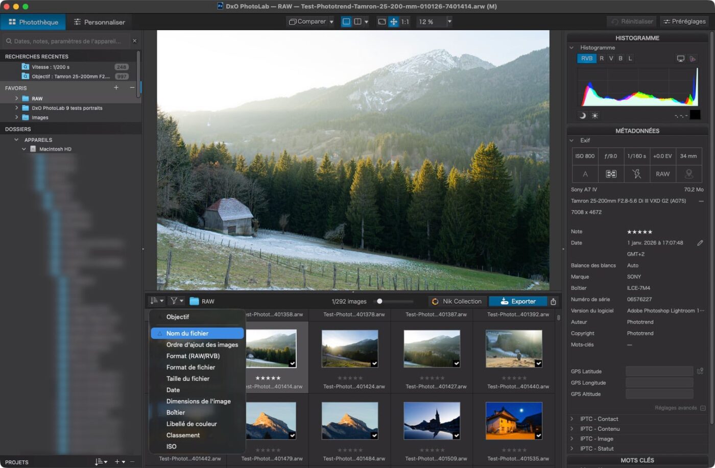 Côté fichiers, PhotoLab 9 couvre l’essentiel des besoins actuels :