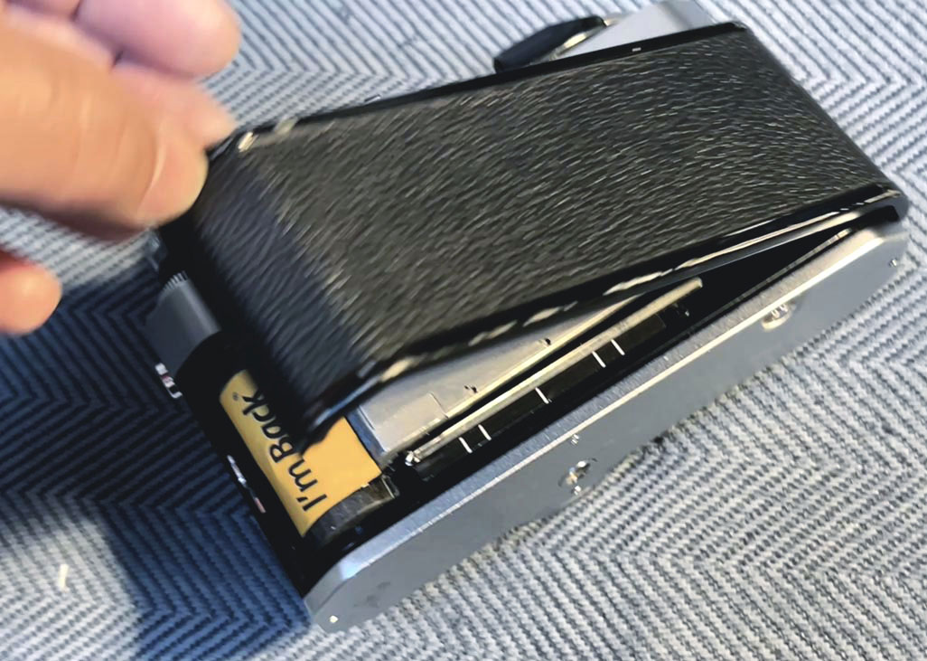 En 2023, l’I’m Back Film avait franchi un cap avec un capteur Micro 4/3 de 20 Mpx logé dans un rouleau, mais imposait toujours un boîtier externe pour la batterie et les commandes, ainsi qu’un déclencheur filaire collé au dos. Un ensemble ingénieux mais encombrant, et les retours d’utilisateurs se sont révélés assez mitigés.