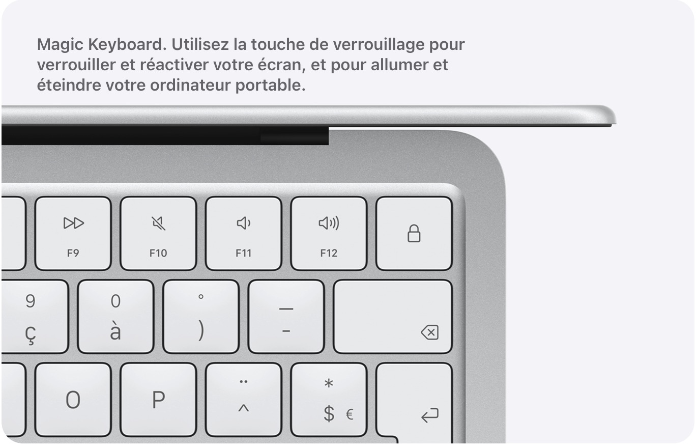 L’écran Liquid Retina de 13 pouces offre une luminosité maximale de 500 nits, pour une définition de 2408 x 1506 pixels. Point notable : la fameuse encoche est ici absente.
