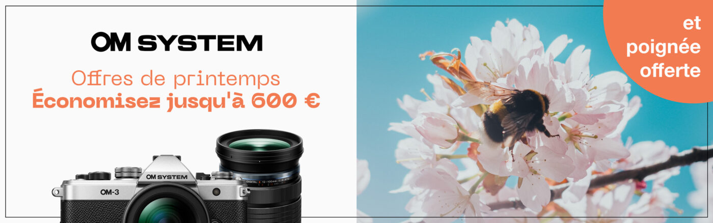 Pour le printemps, OM System propose une nouvelle offre de remboursement (ODR). À la clé, jusqu’à 600 € d’économies sur une sélection d’optiques M.Zuiko, -300 € sur l’OM-1 Mark II, l’OM-3 et l’OM-5 Mark II, et 100 € de remise sur l’E-M10 Mark IV. Vous pourrez également profiter d’une poignée d’alimentation offerte pour l’achat d’un OM-1 Mark II. Cette offre est valable pour tout achat du 26 février au 6 avril 2026.