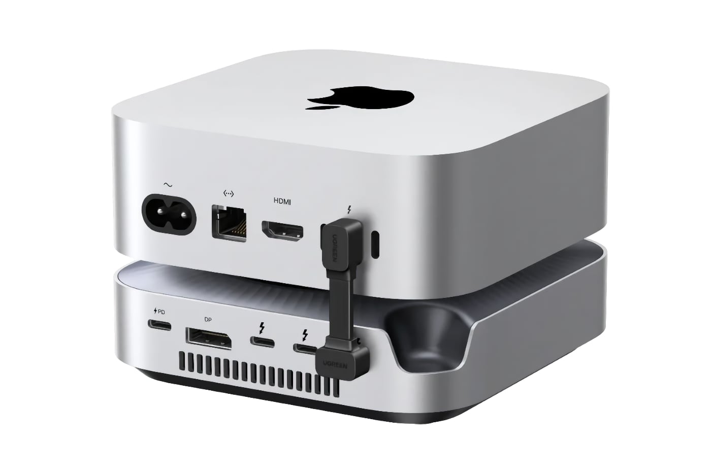 Détails de la connectique du Ugreen Revodok Maxidok 10-en-1 Mac mini :