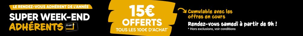 Super week-end adhérents Fnac. Du 27 au 29 mars 2026 à 23h59, pour l’achat de matériel photo (et autres), la Fnac vous offre 15 € tous les 100 € d’achat, ainsi que 10 € tous les 100 € d’achat sur les smartphones et leurs accessoires. Profitez-en dès maintenant !