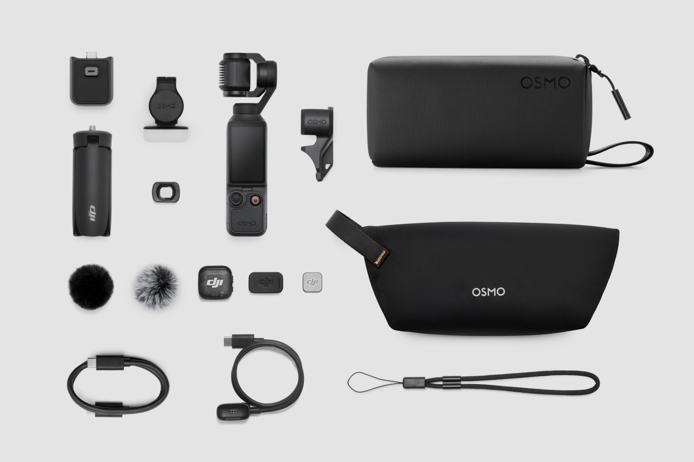 - Creator Combo (619 €) : contenu du Standard Combo + objectif grand-angle(0,75x), émetteur DJI Mic 3, clip magnétique DJI Mic 3, 2 bonnettes anti-vent DJI Mic 3, aimant DJI Mic 3, câble de charge magnétique pour émetteur DJI Mic 3, lumière d’appoint Osmo Pocket 4, mini trépied pour Osmo, sac de transport pour Osmo Pocket 4.