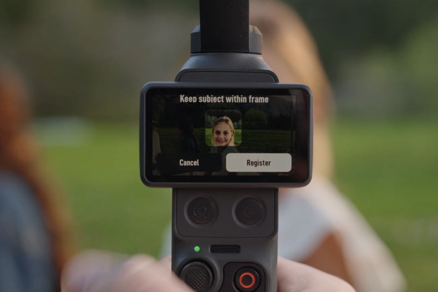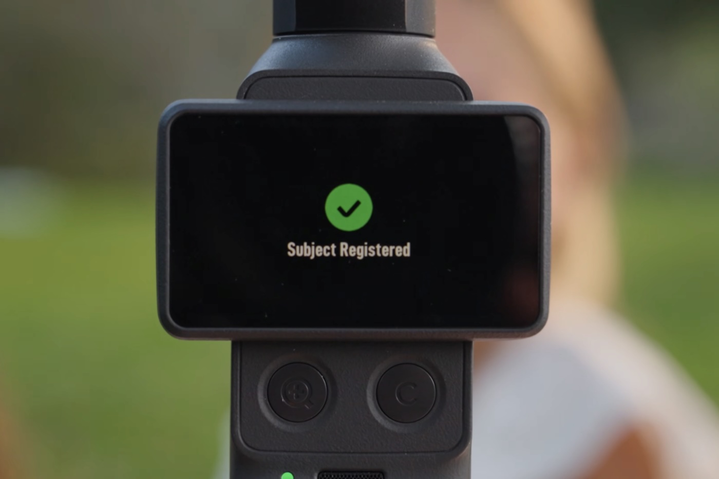 DJI introduit deux nouveaux modes de mise au point intelligente. Le « Suivi du sujet verrouillé » identifie les visages à l’écran (surbrillance jaune pour le sujet en mise au point, grise pour les visages détectés) et permet de basculer d’un visage à un autre d’un simple appui.