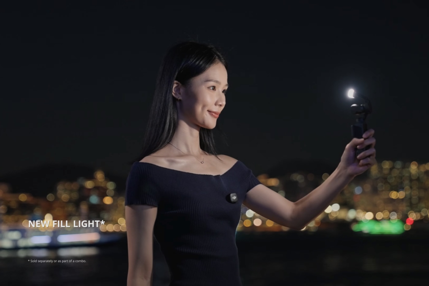 DJI introduit un nouvel accessoire avec l’Osmo Pocket 4 : une lumière d’appoint qui se fixe magnétiquement sur la nacelle et la suit dans ses mouvements, pour un éclairage constant du sujet.
