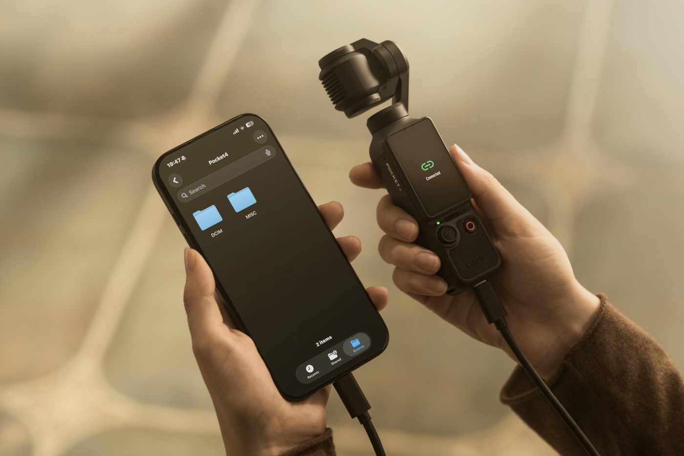 La connectivité passe au Wi-Fi 6 (802.11ax) et au Bluetooth 5.4. Le port USB-C en bas du boîtier est désormais USB 3.1 et est compatible avec le transfert de données, la charge et une sortie DisplayPort jusqu’en 4K. Le démarrage s’effectue, selon DJI, en 2 secondes.