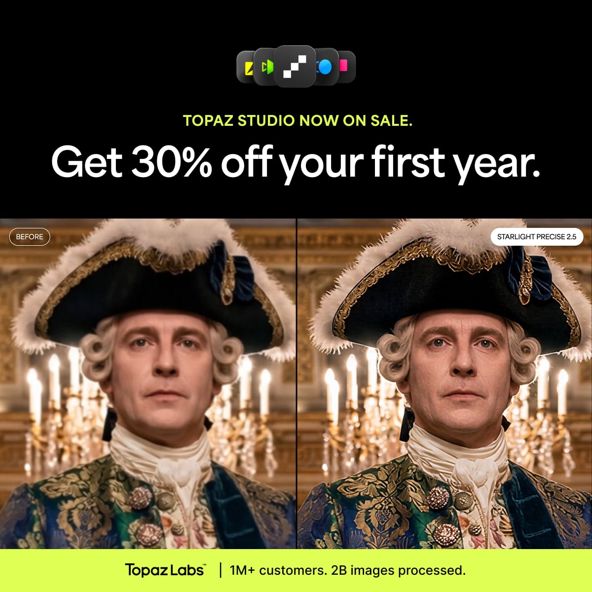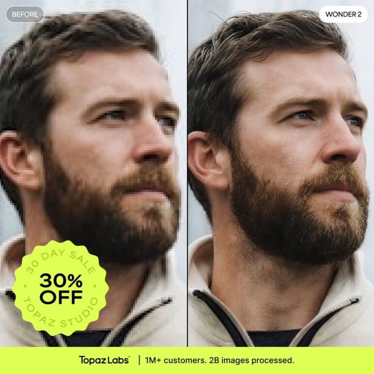 Topaz Labs remet en avant sa suite Topaz Studio avec une remise de 30 % pour les nouveaux clients, du 14 avril au 14 mai 2026. L’occasion de (re)découvrir une offre qui réunit les outils photo et vidéo de l’éditeur autour de modèles d’intelligence artificielle dont une bonne partie s’exécute désormais en local, et qui continue de s’étoffer avec de nouveaux modèles.