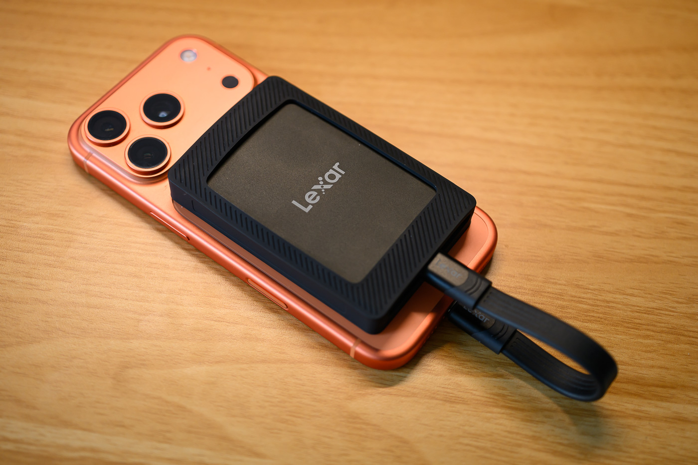 Au final, le SSD réussit le pari avec brio, sans ralentissement, même en ProRes RAW HQ, contrairement au SanDisk Creator Phone SSD qui avait un peu de mal. La vitesse de copie supérieure et les choix de design de Lexar, avec un MagSafe sur l’étui plutôt que sur le SSD lui-même, réduisant la conduction de chaleur entre l’iPhone et le SSD, font ici la différence.