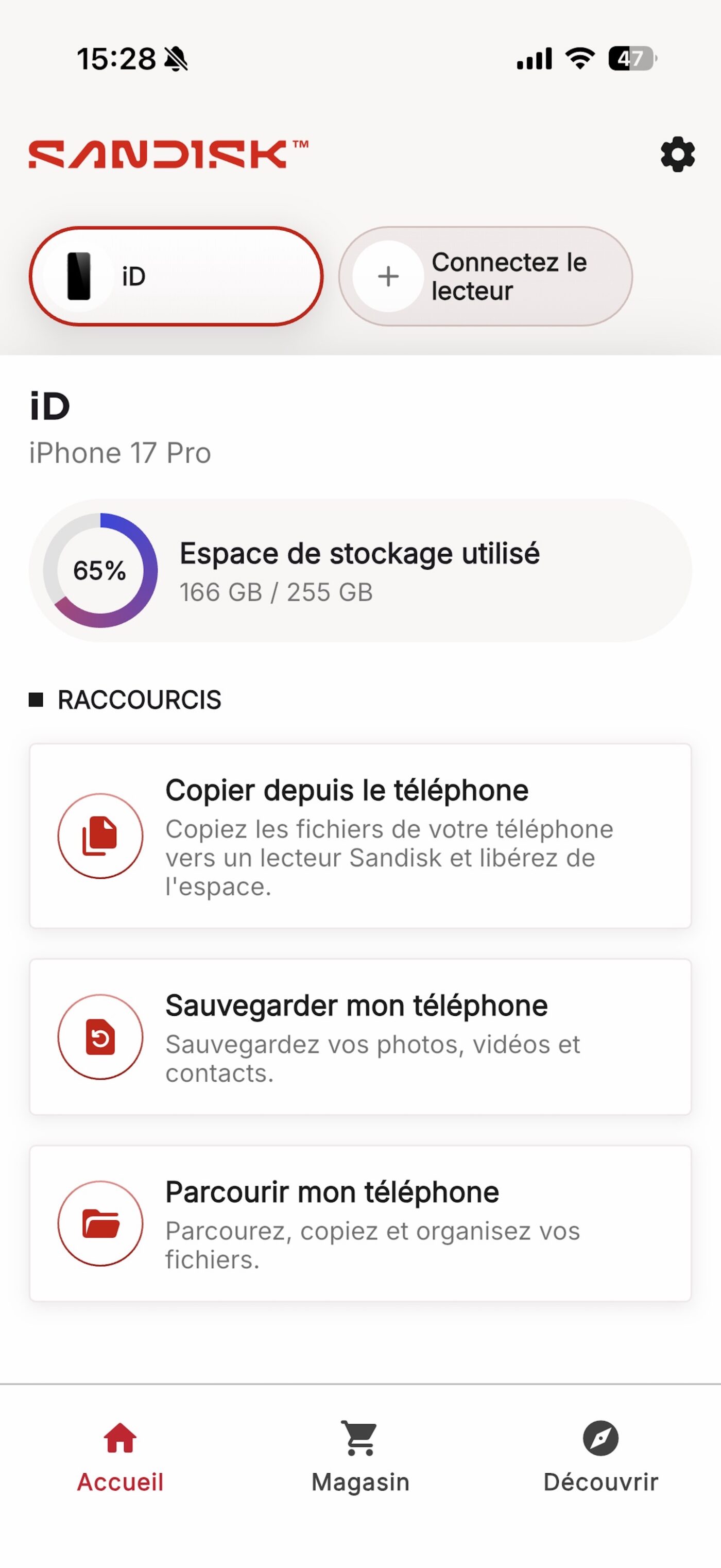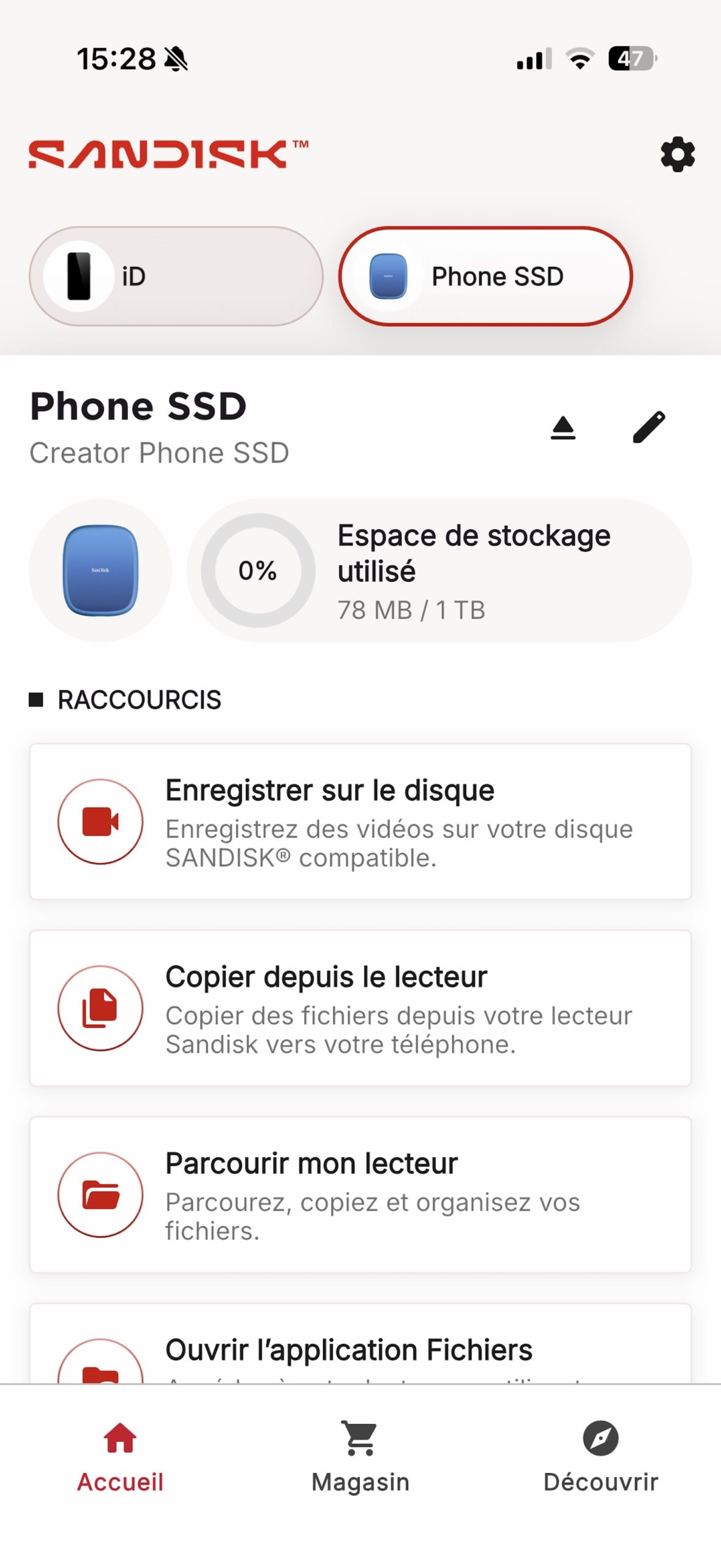 SanDisk accompagne le SSD d’une application mobile compatible iOS et Android, qui permet d’automatiser le transfert des photos et vidéos vers le stockage externe.