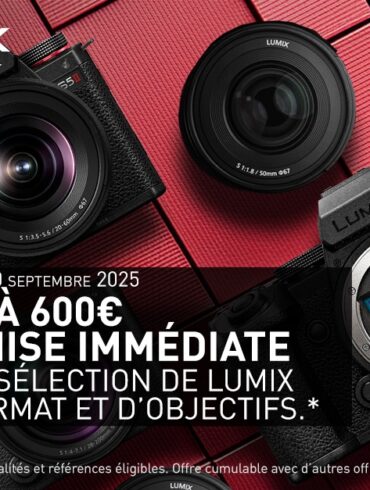ODR Panasonic : profitez de 600 € de remise immédiate sur boîtiers, optiques et kits Lumix. Cette offre est valable du 15 août au 30 septembre 2025.