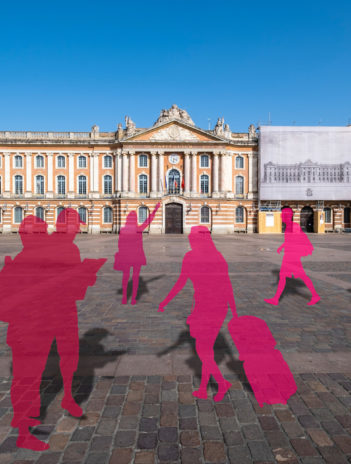 Adrien Nowak est un photographe auteur de la série "La vie en couleurs". Il a voulu redonner à la ville de Toulouse son dynamisme perdu. En incrustant des silhouettes colorées dans ses photographies.