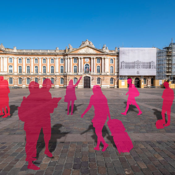 Adrien Nowak est un photographe auteur de la série "La vie en couleurs". Il a voulu redonner à la ville de Toulouse son dynamisme perdu. En incrustant des silhouettes colorées dans ses photographies.