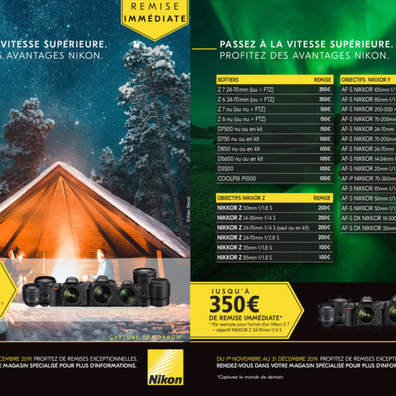 Jusqu'au 31 décembre 2019, Nikon vous permet de bénéficier de remises allant jusqu'à 350 € sur une large sélection de reflex, d'hybrides et d'objectifs.