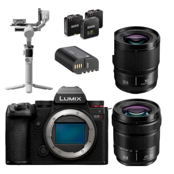 Black Friday 2025. IPLN propose un kit ultra-complet autour du Lumix S5 II avec les objectifs Lumix S 20-60 mm f/3,5-5,6 et Lumix S 50 mm f/1,8, une gimbal DJI RS4 Mini Standard, un micro sans fil Rode Wireless Go 3, ainsi qu'une batterie supplémentaire.