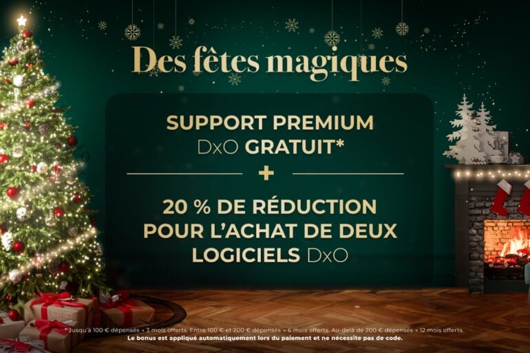 Jusqu'au 6 janvier 2026, bénéficiez de 20% de réduction pour l'achat de deux logiciels DxO ou plus, ainsi qu'un accès gratuit au Support Premium DxO.