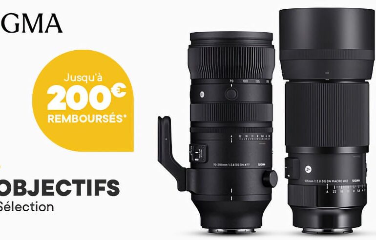 Jusqu'au 31 mai 2026, Sigma vous rembourse jusqu'à 200 € sur une large sélection d'objectifs en monture Sony E, Canon RF, Fujifilm X et Leica L.