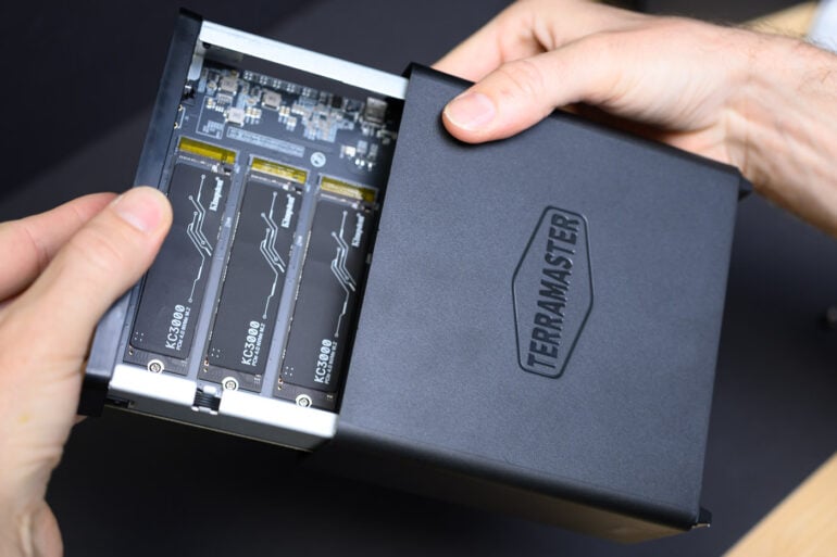 Découvrez notre test du TerraMaster D4 SSD, un boîtier pouvant acceuillir 32 To en SSD M.2, USB4 à 40 Gb/s, plus de 3000 Mo/s en RAID.